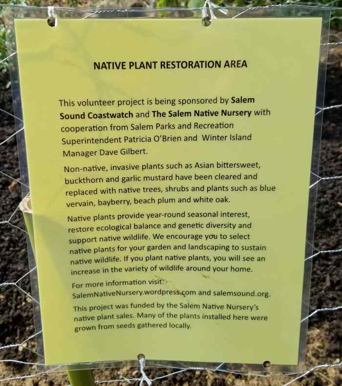 Salem Native Nursery partnered with Salem Sound Coastwatch to host its largest project yet in 2023. We installed 125 native plants, representing 35 species of trees, shrubs, and perennials in eight zones at Winter Island Park, on September 9, 2023! This project will help to beautify Winter Island even further, to control erosion along the stone dust walking path, and to make Winter Island one of the most biodiverse public spaces in all of Salem!